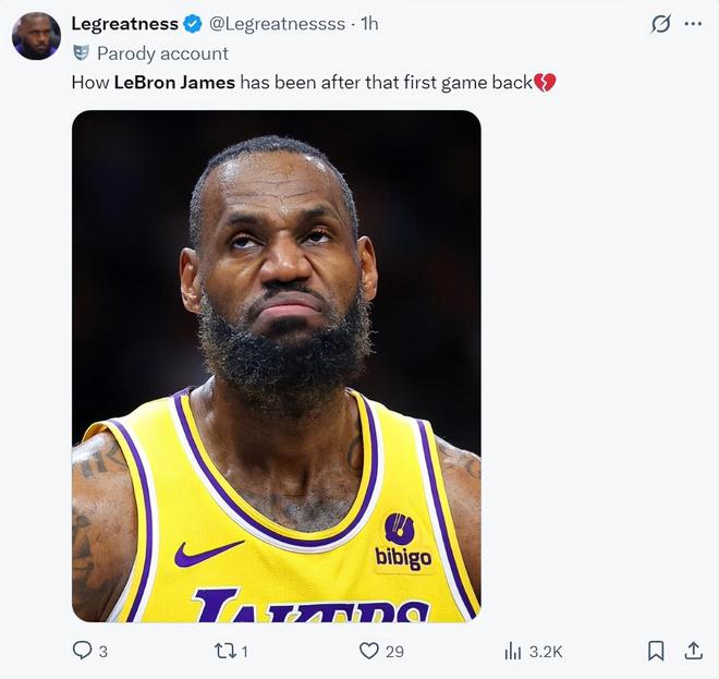 湖人媒體:勒布朗在第一場比賽復(fù)出后的表現(xiàn)已經(jīng)開始下滑,心碎了。
